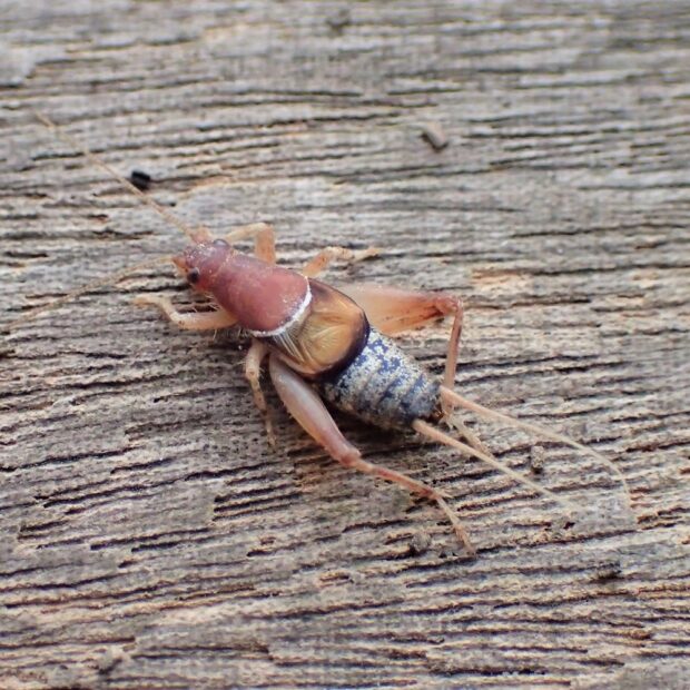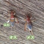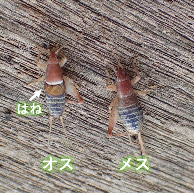 樹上性のコオロギに近い仲間。 庭木、 生垣、 公園の樹木などで、 「チン、 チン、 チン」と小さな声で鳴き、 家に入り込むこともあります。 鳴き声が鐘をたたく音に似ていることから、 カネタタキと名づけられました。