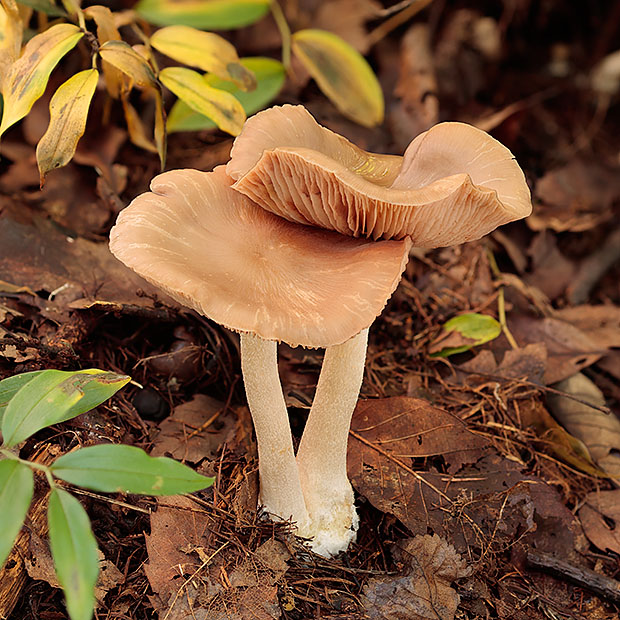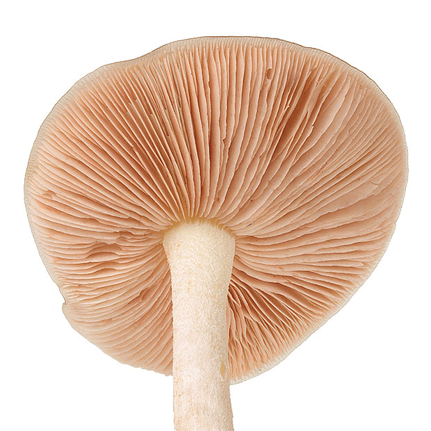 胞子が成熟してくると、 ひだはピンク色をおびるのが特徴です。