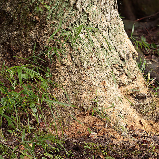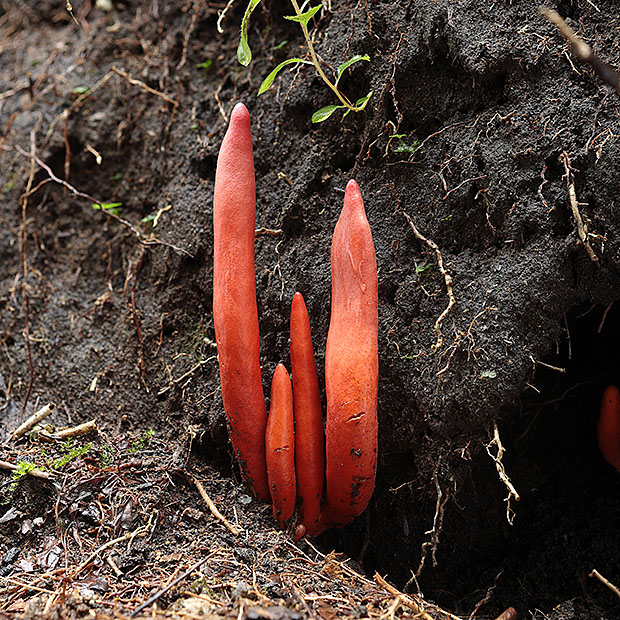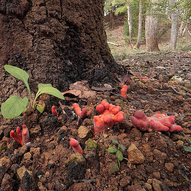 死亡例のある猛毒きのこです。 コナラ、 クヌギ、 マテバシイなどが突然枯れてしまう「ナラ枯れ」が流行すると、 枯れた樹木の根もとや周辺からカエンタケがよく生えます。