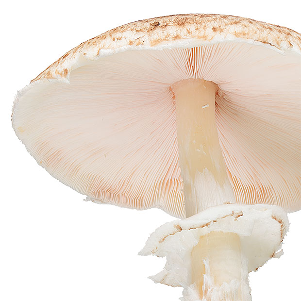 マッシュルームの仲間は肉を傷つけると赤っぽく変色するものと、 黄色に変色するものがあります。 マッシュルームは赤っぽく変色します。