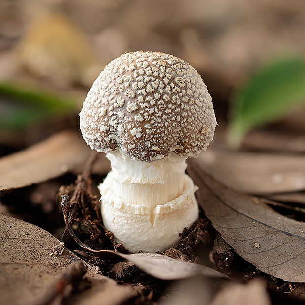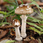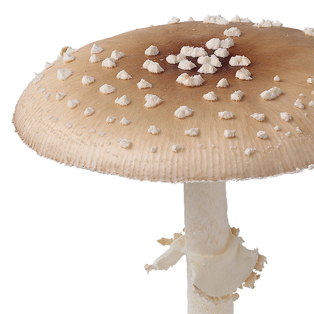 茶色の傘に白いいぼがトレードマークです。 外国ではヒョウの模様を連想してパンサーキャップと呼んだりします。