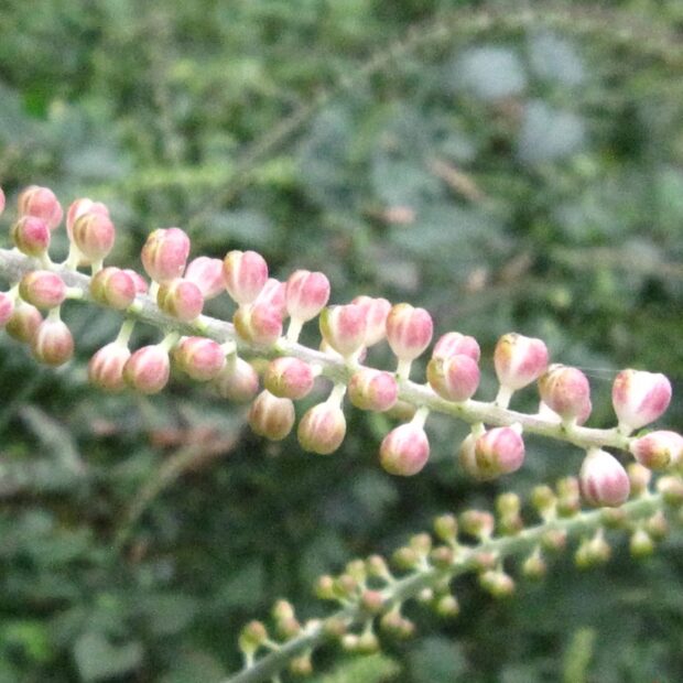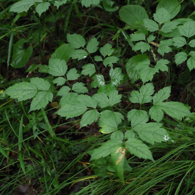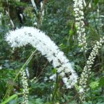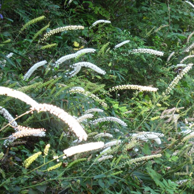 イヌショウマより遅れて咲きだし、 林の中で背の高い白いブラシのような花穂が目立ちます。 根は漢方薬の升麻(ショウマ)として利用され、 若葉もゆでて水にさらして食べたことが名の由来といいます。 (HT)