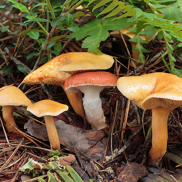 松林に生える代表的なきのこです。 食用きのこで、 以前は収穫量が多く塩漬けにして保存したりしました。 最近は松枯れの流行によって松林が少なくなり、 アミタケの収穫量も激減しました。 アミタケと一緒にオウギタケが生えることがあります。
