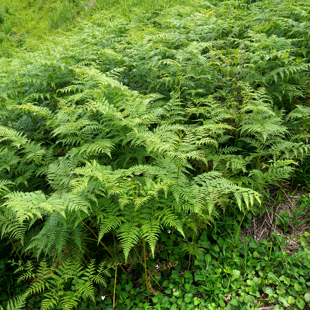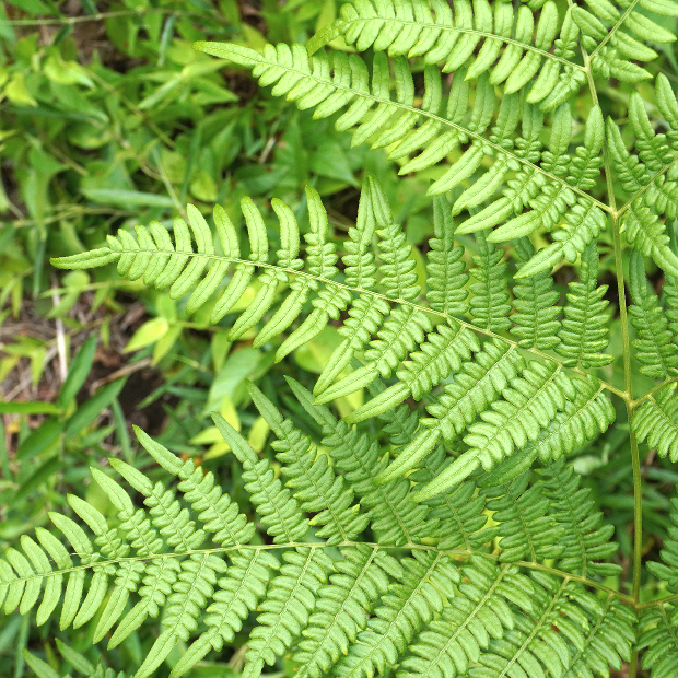 住宅地近くなど人里に多い大きめのシダ。 葉は明るい黄緑色で毛が目立たず、 切れ込みは丸みがあります。 シダがあまり生えなさそうな明るく乾いた草地によく群生するので、 慣れれば見分けやすいシダです。