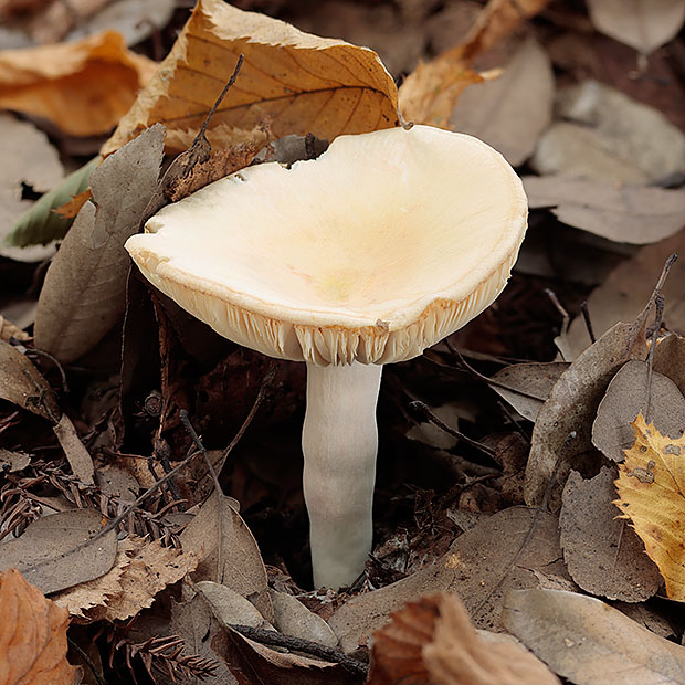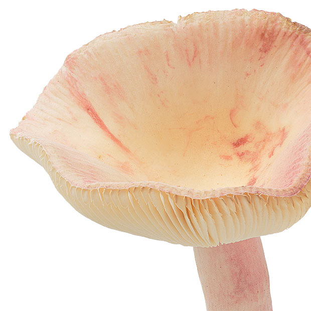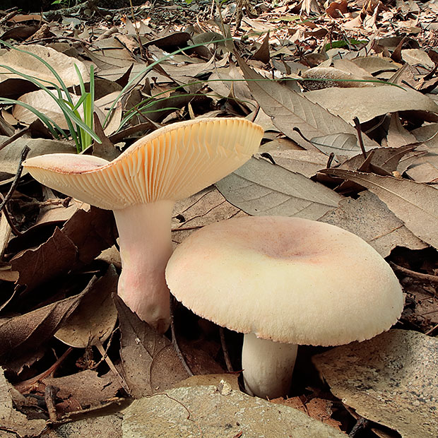 まるでモモの果実のような傘のきのこです。 指で触ってみると少しぺたぺたして、 カブトムシのにおいがします。 カブトムシのにおいのするきのこにニオイコベニタケがあります。