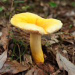傘と柄のウコン色が美しく、 見つけるのがうれしいきのこです。 でも、 肉はちょっといやなにおいがします。