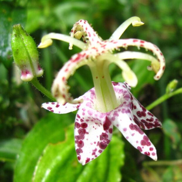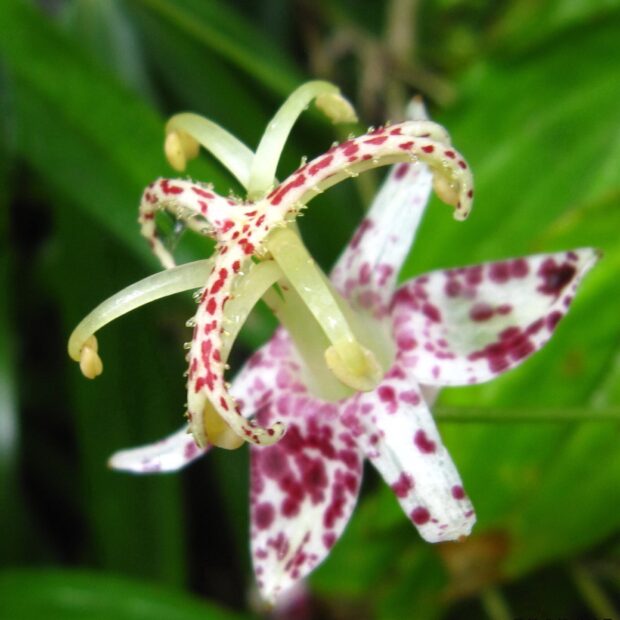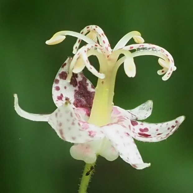 ホトトギス・・斜め上方に開く(花の中心部に黄橙色の部分)