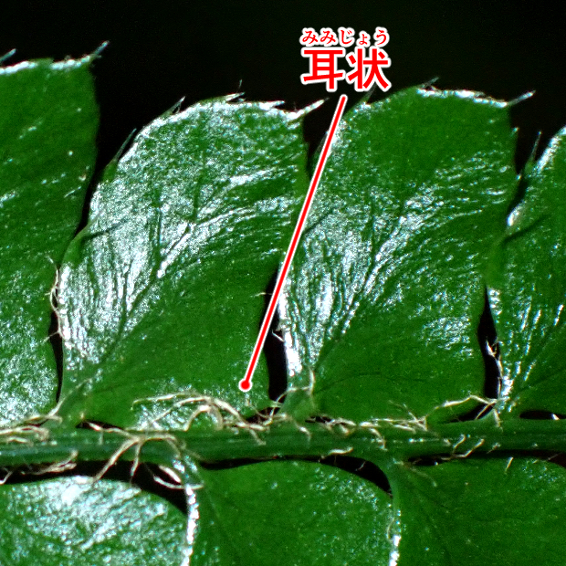基部の片側が耳状に出るのはイノデ類共通。