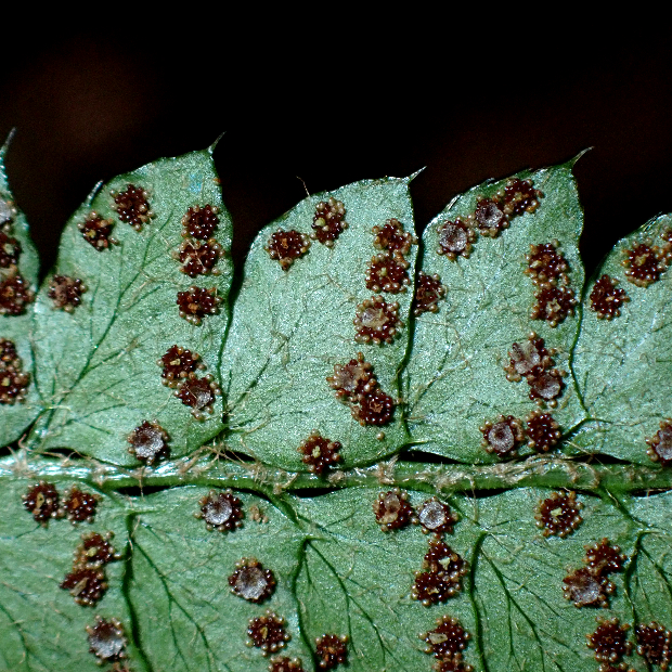 胞子のう群は円形でフチ寄りにつく。