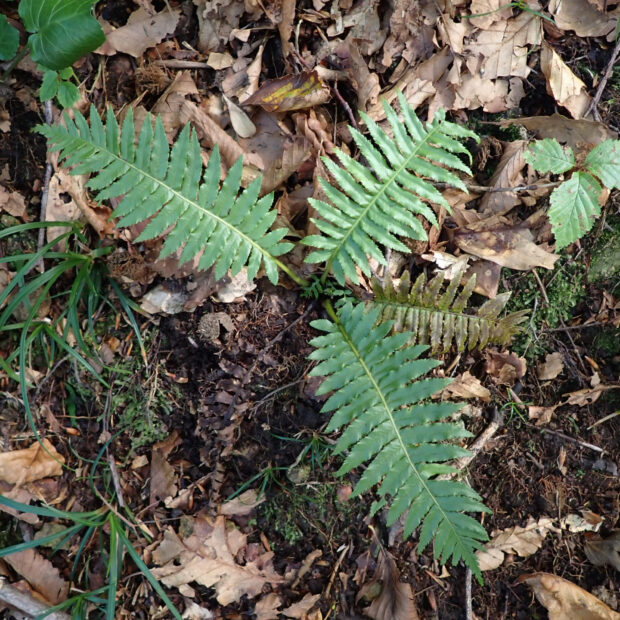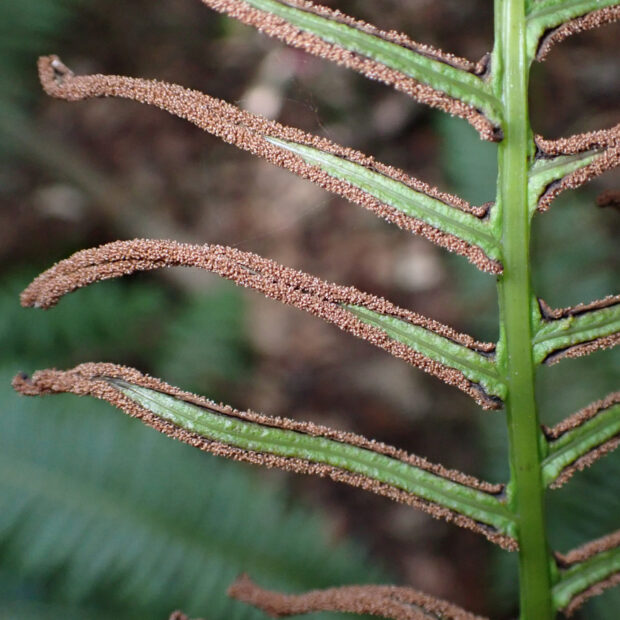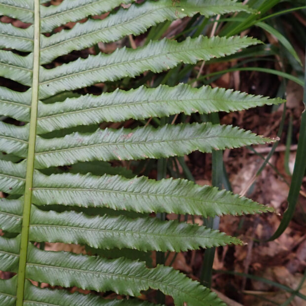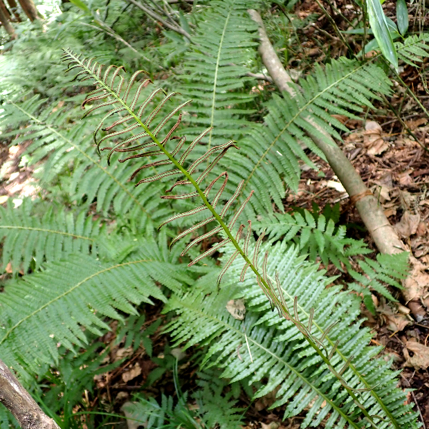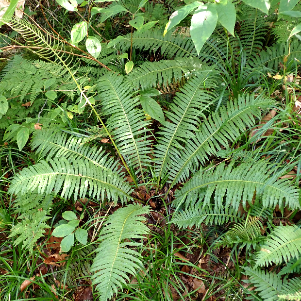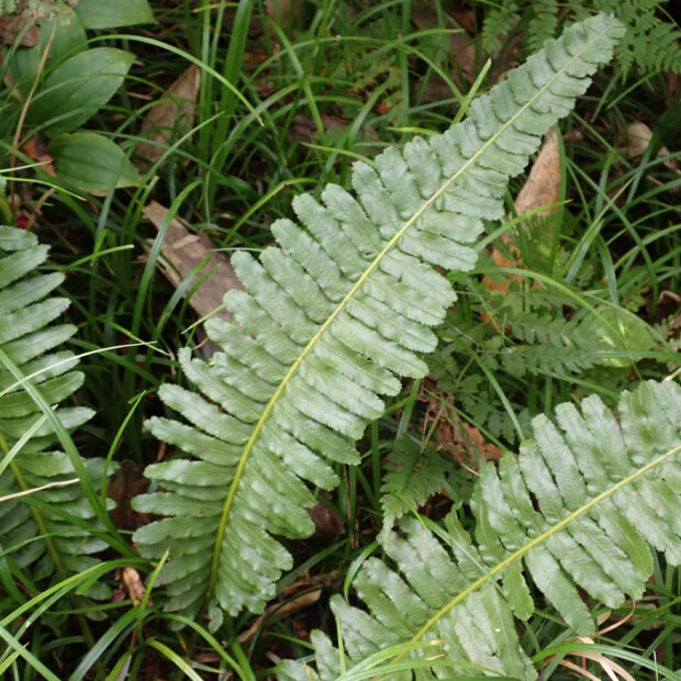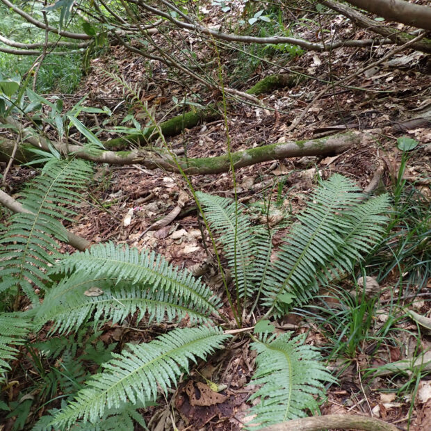 日本海側によく見られるシダです。 葉を1か所からたくさん出す姿は裸子植物のソテツに見えなくないかも?名前の似ているヤブソテツとは分類が大きく異なります。 日本固有種です。