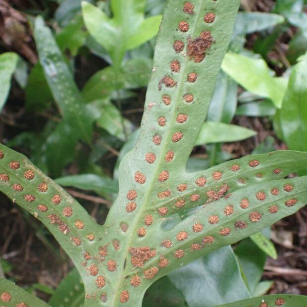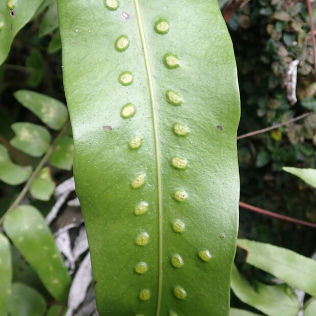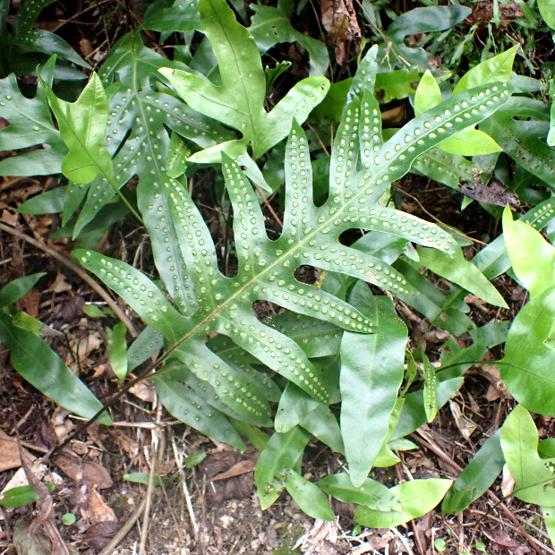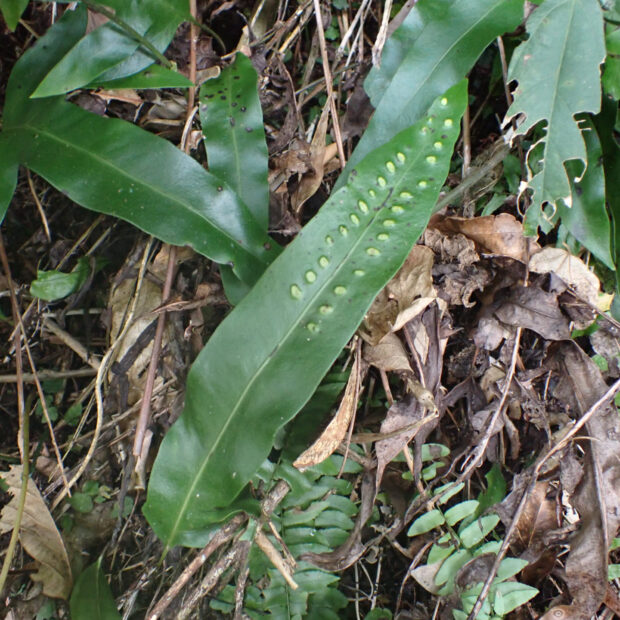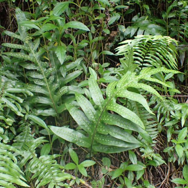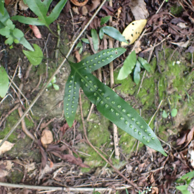 日本では沖縄にのみ見られるシダです。 本土に多く生えるノキシノブやミツデウラボシを厚くデカくしたような雰囲気をしています。 いかにも熱帯のシダという感じです。