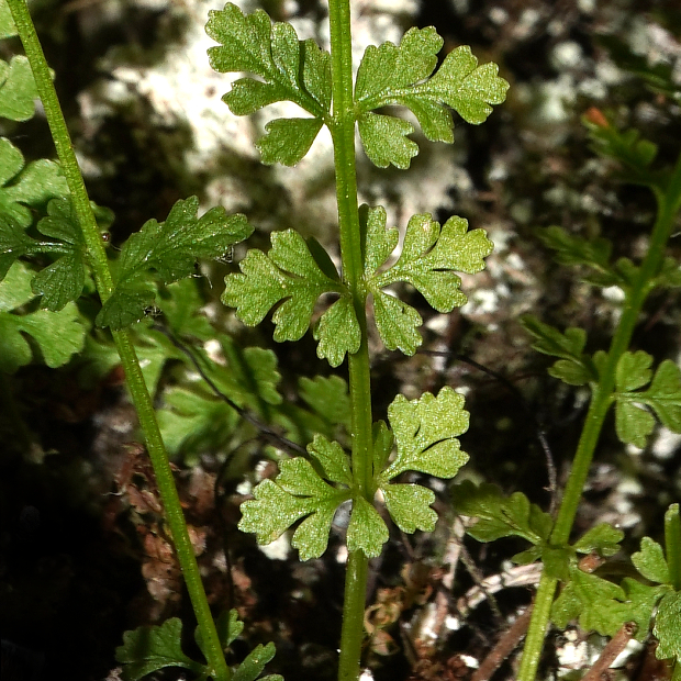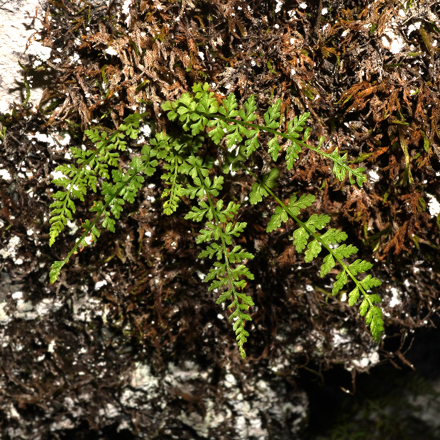 小さめで長い葉が特徴的なイワデンダ類のシダ。 細かく切れ込んだ葉はやわらかく、 名前に反してやさしい感じがします。 葉裏の胞子のう群を覆う包膜はフチが毛状に切れ込み、 葉柄には基部から1/3の部分に関節があります。 トガクシは長野県の戸隠山が由来です。