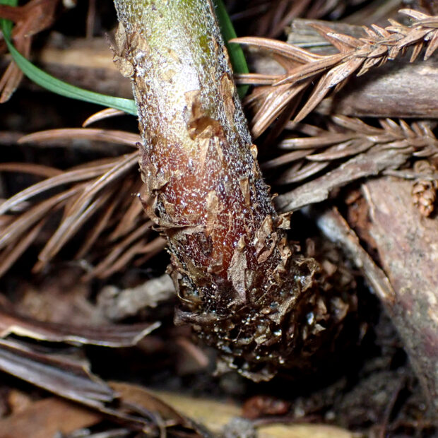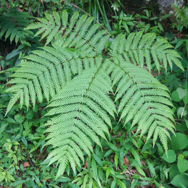 近ごろニホンジカの増加による食害によって多くの種類のシダが数を減らし、 絶滅寸前まで追い込まれるものもでてきました。 ところが、 ナチシダなど一部のシダはニホンジカが好まないので逆に数が増え、 あちこちで見るようになりました。