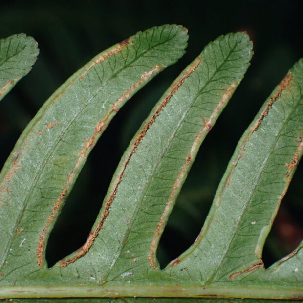南日本に多い大きなシダです。 5枚に分かれる葉は変わっていて、 似た仲間は日本にいません。 名前は和歌山県の那智山からきています。