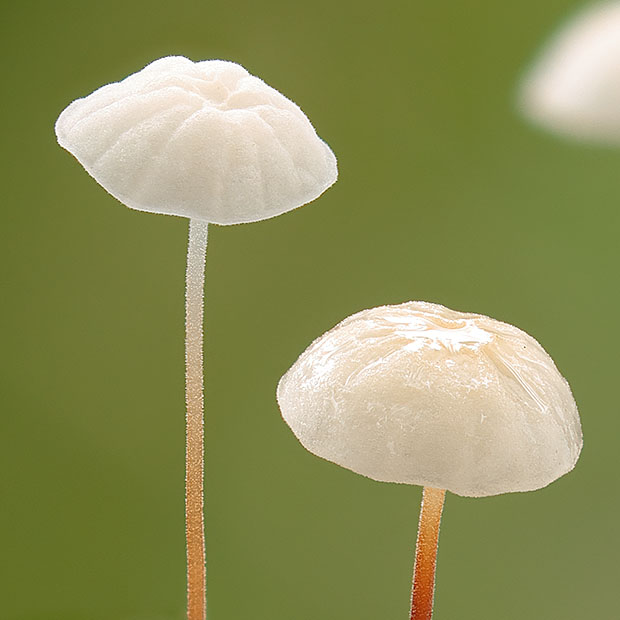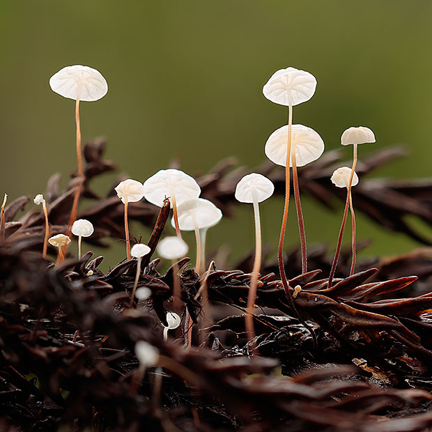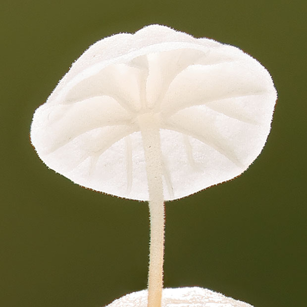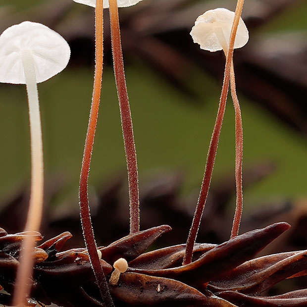 高橋春樹さんが2000年に新種記載しました。 学名はMarasmius capitatus Har. Takah. です。