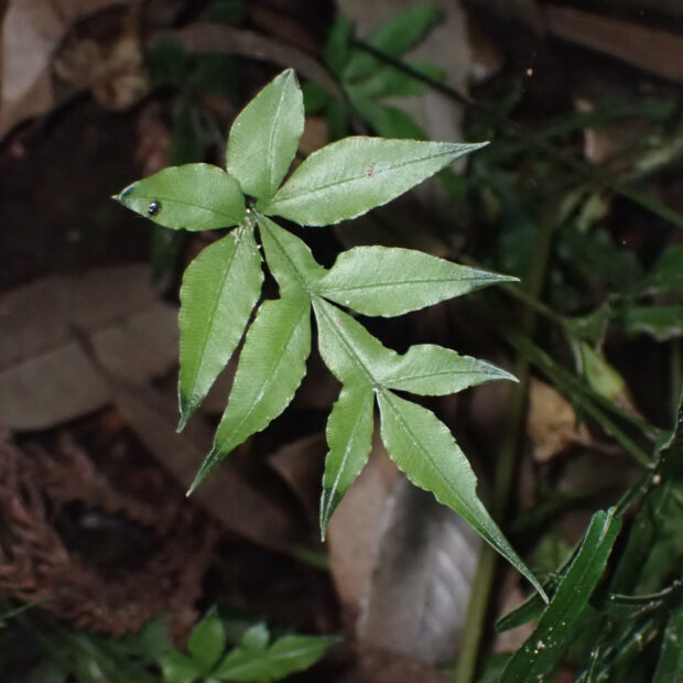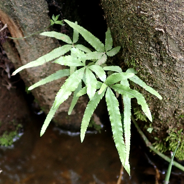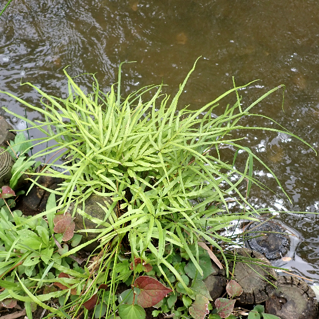 ●リュウキュウイノモトソウは①九州南部以南に生え、 ②さらに小型で、 ③葉軸に翼はありません。