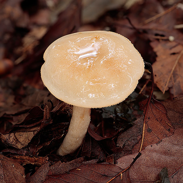 クリーム色や灰色をおびた、 傘にぬめりのあるきのこです。 雨の降ったあとは、 いっそうぬめりが強くなり、 傘がきらりと光って見えます。 傷つけると半透明の乳液がでます。 肉は少し辛味があります。