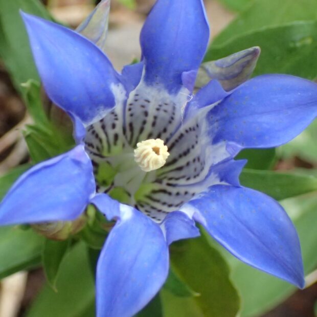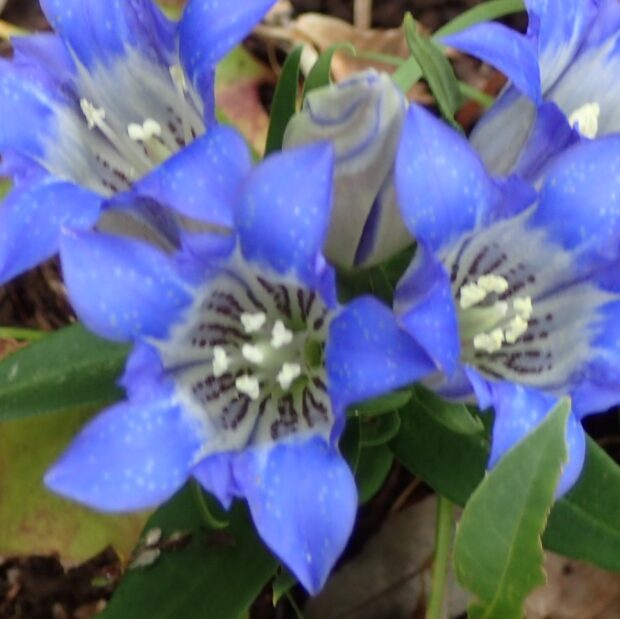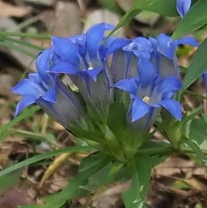 東海~関西地方の湿地で見られる葉が細いリンドウはホソバリンドウです。 花屋で切り花として売られているのは、 本州中部以北から北海道で見られるエゾリンドウを栽培したものです。 エゾリンドウは葉の裏が白っぽく、 葉の縁はざらつきません。 中国にあるのはトウリンドウです。