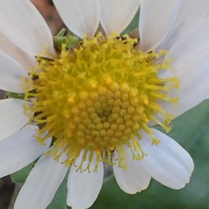 秋の野菊の一つで、 日当たりの良い斜面などで一番遅くに白い花を咲かせます。 栽培するキクに似た丸みのある葉が特徴です。