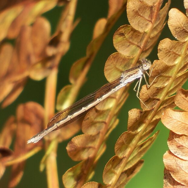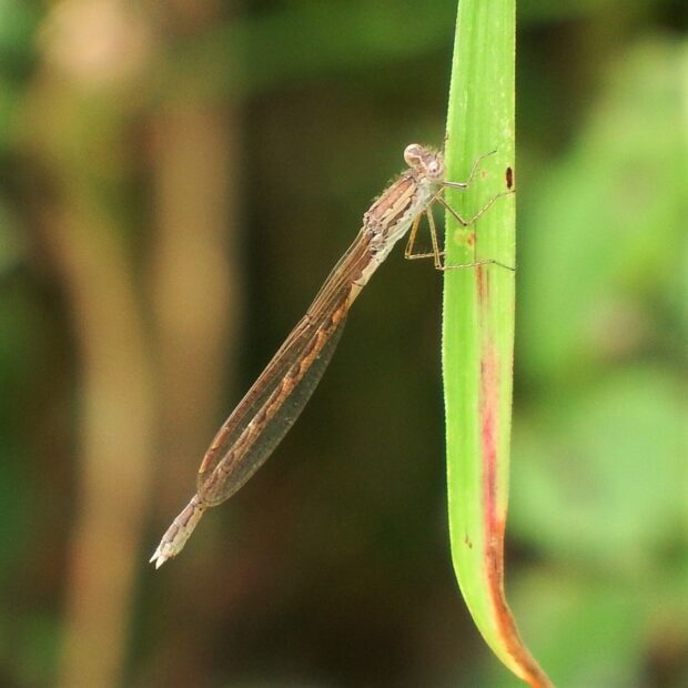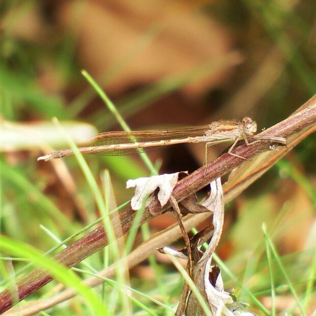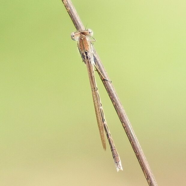 平地~山地の植物が生えている池や沼で見られるアオイトトンボの仲間。 成虫で越冬する北方系のトンボ。 6~8月に羽化したトンボは、 冬を越し、 春に交尾や産卵を行い、 6月頃に姿を消します。 体色は春になってもほとんど変わらず地味なままです。