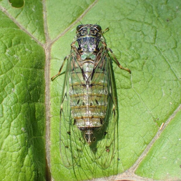 森林性のセミ。 1頭が鳴き始めると、 一斉に「ミョーキンミョーキンケケケ・・・」と大合唱。 北海道では平地で見られますが、 西日本では標高1000m付近のブナ林に生息しています。 (MT)