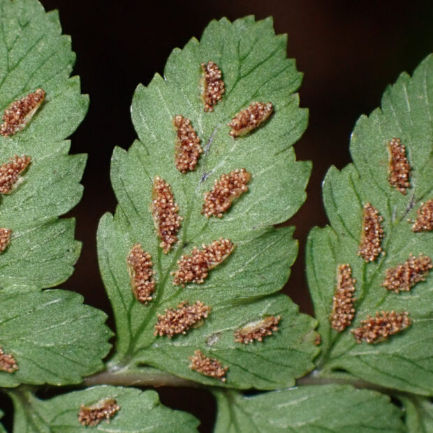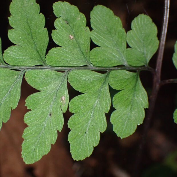 山地で見られるシダです。 唐草(からくさ)は絡草(からみぐさ)由来の当て字で、 つる植物の絡まる姿を図にしたものを唐草模様といいます。 葉の切れ込みの感じがこれに例えられました。