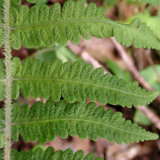 ●ミヤマシケシダ・・・ウスゲミヤマシケシダよりも小型で、 葉柄は細めで基部が粘液に覆われません。 深山の林内に多いです。