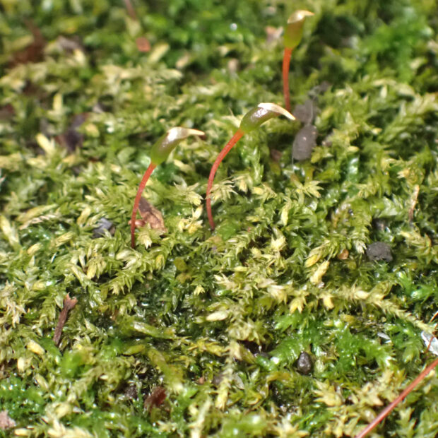 都市公園の土上などによく生えている身近なコケ。 名前のナギは裸子植物のナギの葉に、 ツクシは不明ですがおそらく九州の古い呼び名「筑紫」に由来すると思われます。