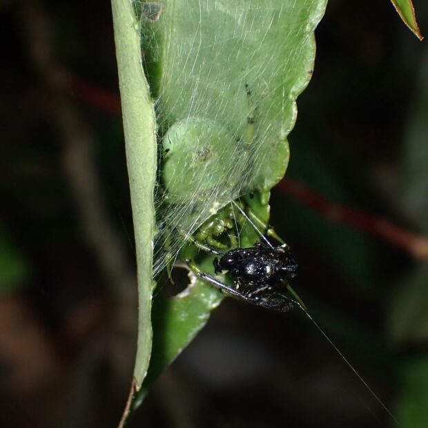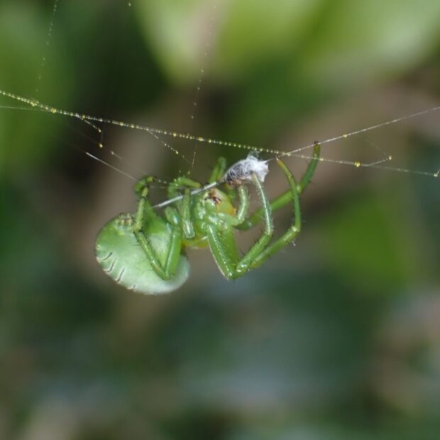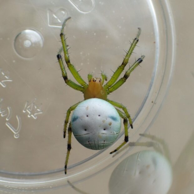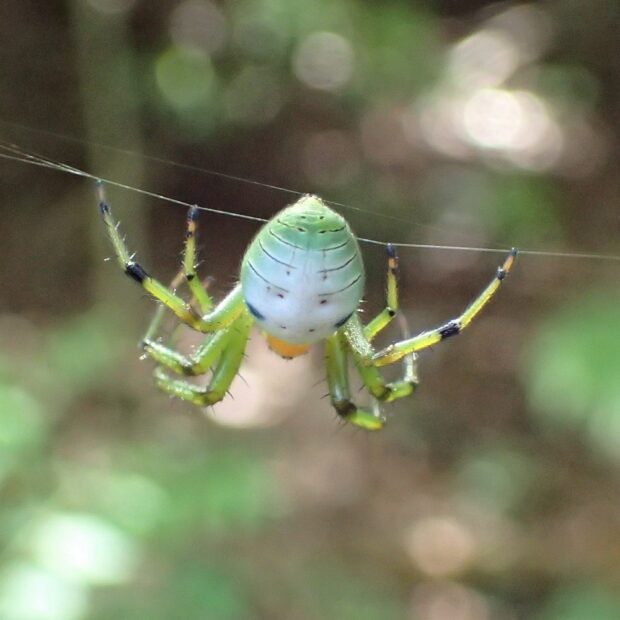 キレ網をはる緑色の美しいクモ