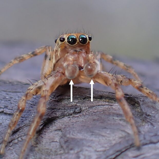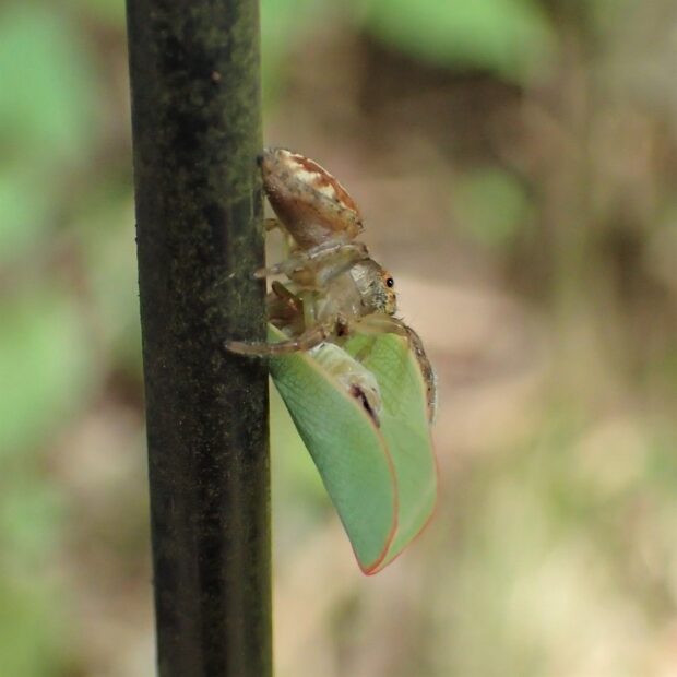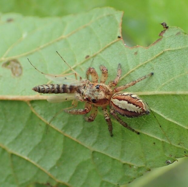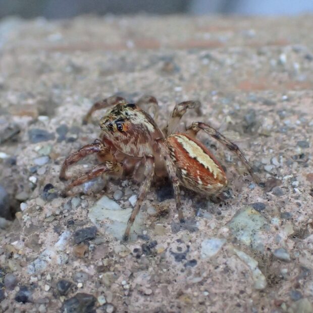 よく見かける赤い帯のハエトリグモ