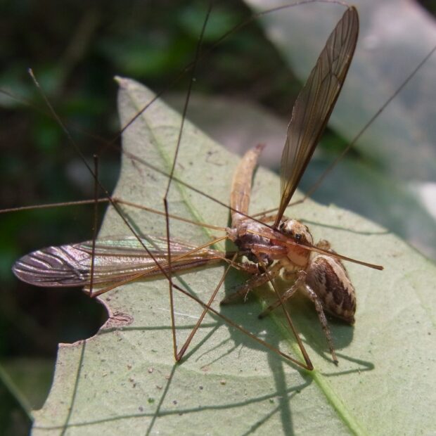 平地~山地まで広く生息し、 草地や木の上で普通に見られるハエトリグモ。 名前は発見者のクモ学者W.デーニッツにちなんだもの。 ハエトリグモは網ははらず、 歩き回りながら獲物にとびつきます。