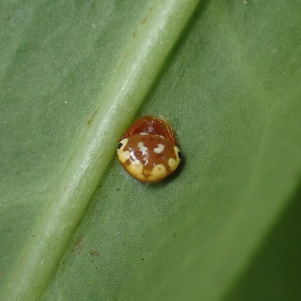 赤い小さなテントウムシのようなクモ
