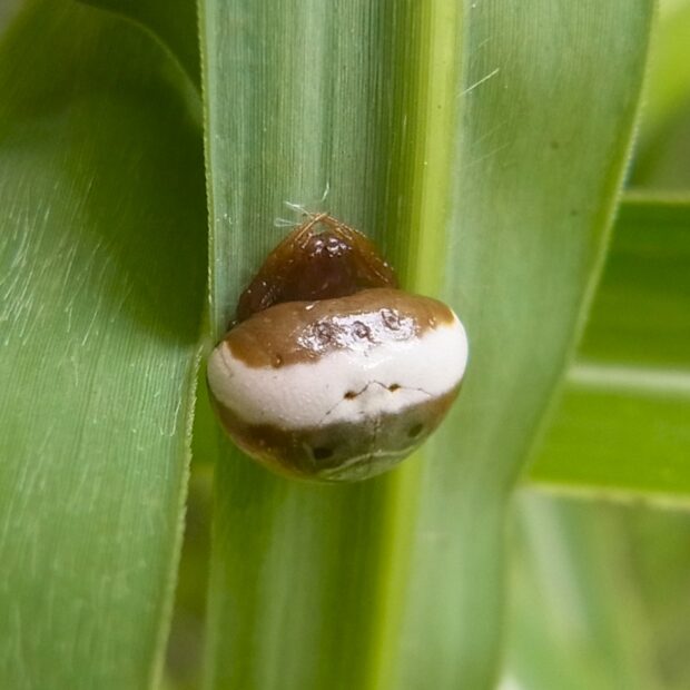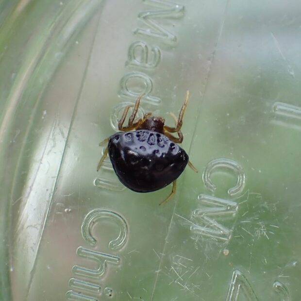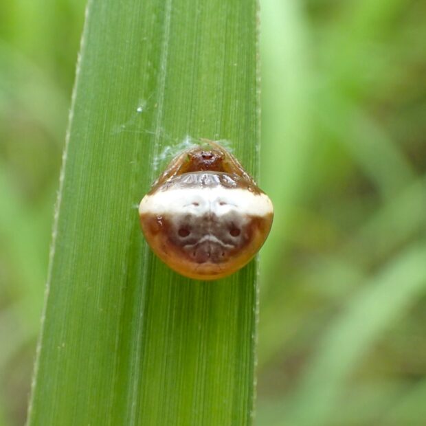 平地~山地に生息し、 昼間はイネ科植物などの葉裏でじっとしています。 夕方から活動を始め、 草の間に横糸がたるんだ同心円状のまるい網を張ります。 横糸には粘球がついており、 ガがつかまると糸が切れ、 ガが宙づりになる仕組みになっています。