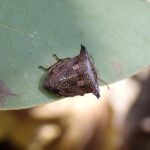 胸の両側がトゲ状に横に張りだし、 先端が斜めに切れています。 この鋭いツノが牛の角のように見えることが名前の由来です。 成虫で越冬し、 冬でも見られます。