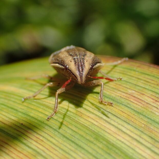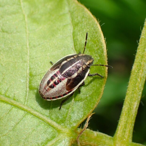 イネ科植物の生える草地で普通に見られます。 うす茶色の体に白っぽい縦すじがあり、 特徴的な体形をしています。 鳥のウズラの模様に似ていることが名前の由来です。