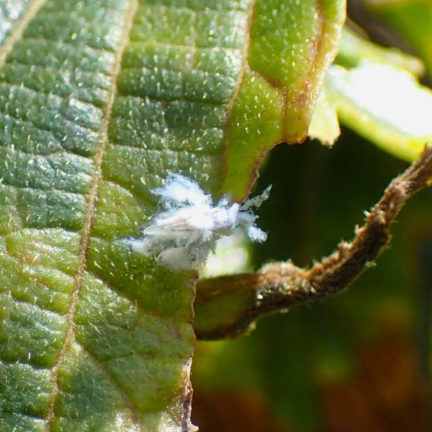エノキの葉裏がフワフワの綿だらけ!