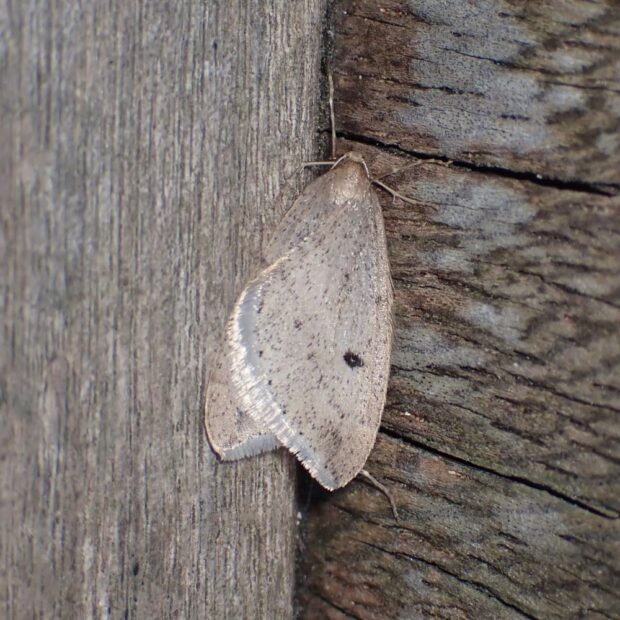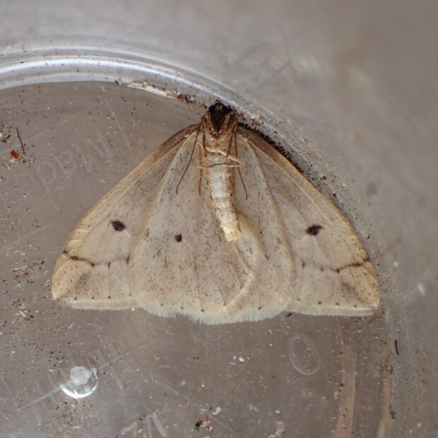 • オス。 後ばねは白っぽく、 小さな黒点がある。