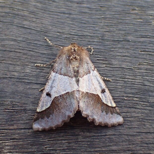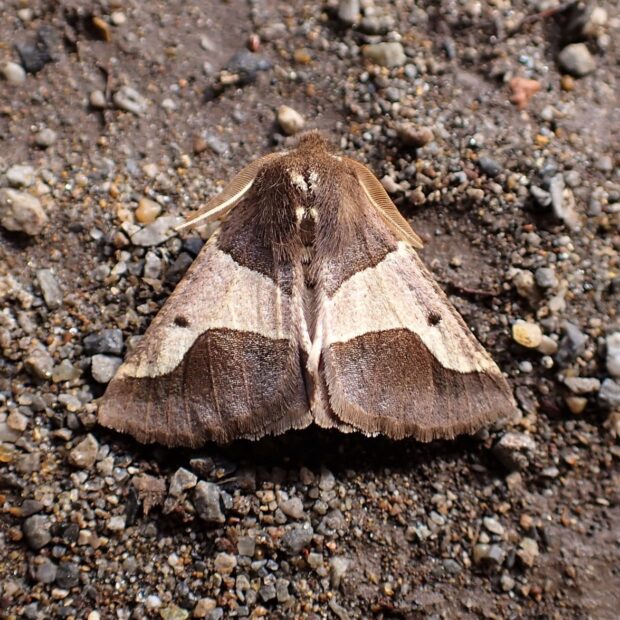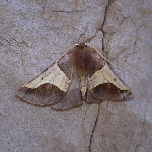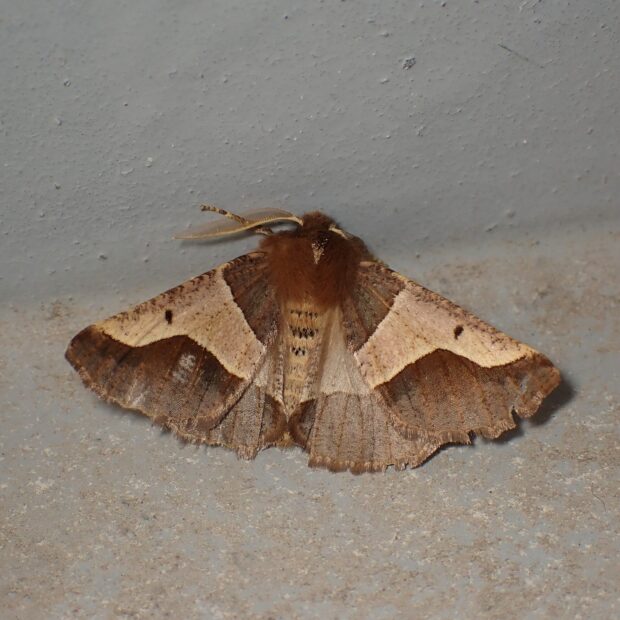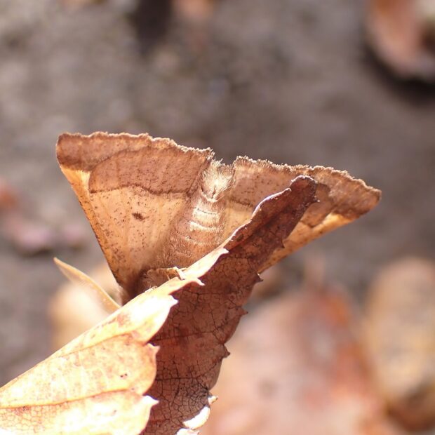 晩秋に現れるエダシャクの仲間。 前ばねは二色に分けられ、 模様は特徴的。 触角はオスは羽毛状、 メスは糸状です。 幼虫は、 春、 様々な広葉樹で普通に見られ、 くるっと丸まるポーズがおもしろいです。