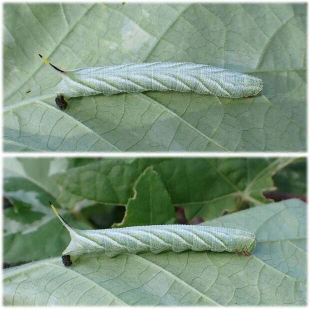 食べ物 : 幼虫はサツマイモなどヒルガオ科の植物の葉、 成虫は花の蜜