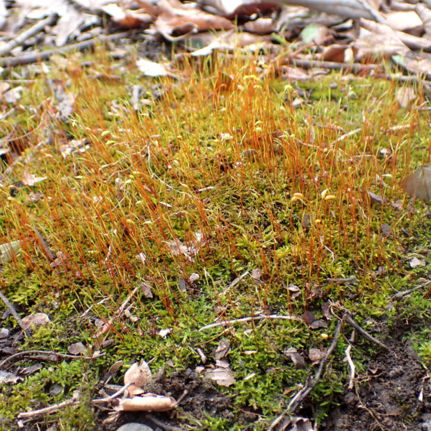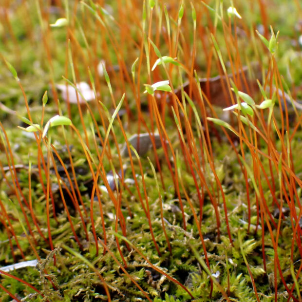 土の上、 石の上、 倒木の上など様々な場所に生えるコケ。 都市公園でも春ごろから胞子体をたくさん出す姿を見ることができます。 蚤(のみ)と埴輪(はにわ)が合わさった変わった名前をしています。