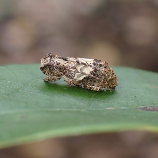 上翅(じょうし)に白い帯があるサビカミキリ。 平地~山地の雑木林などで普通に見られます。 ナカジロといいますが、 上翅の上の方が白くなっています。 いろいろな広葉樹の枯れ枝に集まり、 交尾・産卵します。