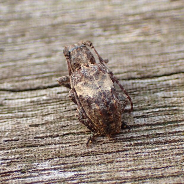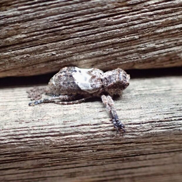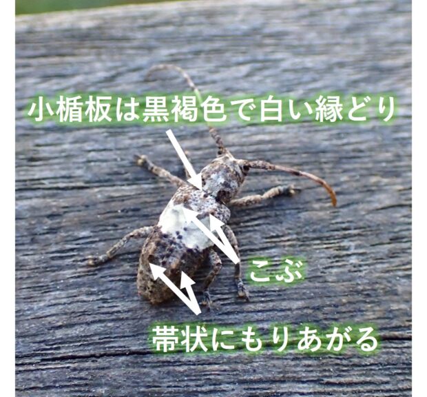 白い帯模様があるデコボコカミキリ