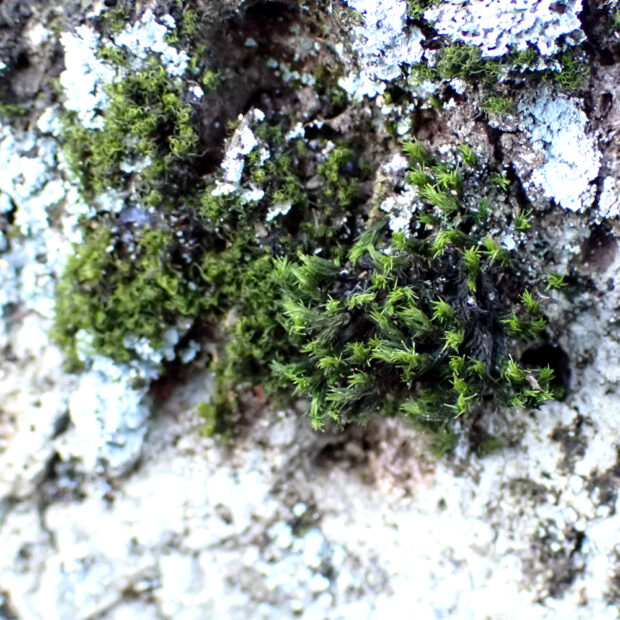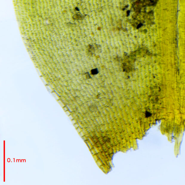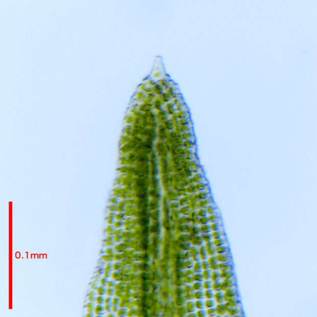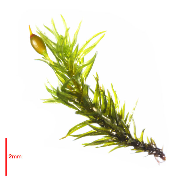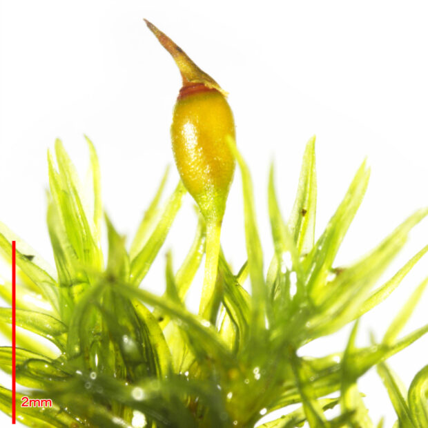 主に山地に生えるスナゴケの仲間。 「朝鮮(ちょうせん)」とつきますが、 日本にも元から生えています。 葉先にごく短い透明な部分があることなどが特徴です。