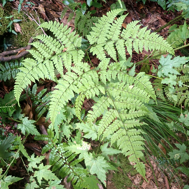 日本では主に関東や東海の低山に見られるシダです。 白っぽい緑色をしていることや、 一番下の切れ込み(最下羽片)がカマ状に曲がって基部の柄が長いことが特徴です。 名前の「サクライ」は人名に由来します。