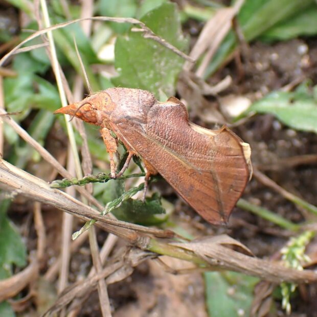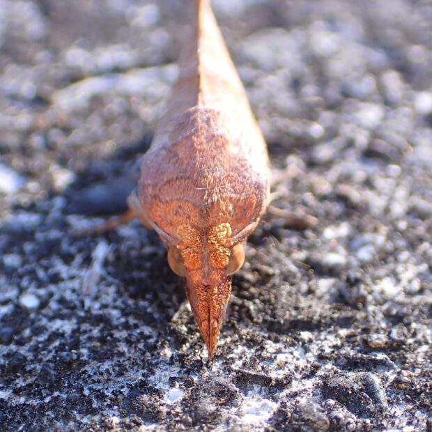 枯葉そっくり!顔が尖った凸凹のガ