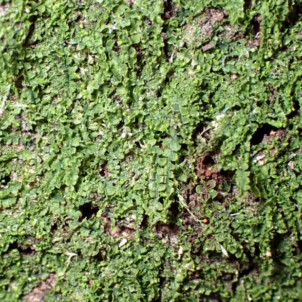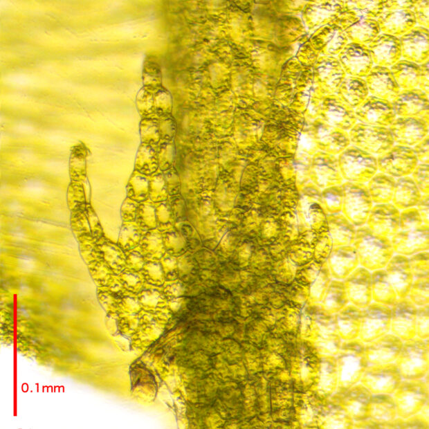 樹木の根元近くによく見られる小さなコケ。 しばしば葉のフチに粉のような無性芽をたくさんつけることが大きな特徴です。