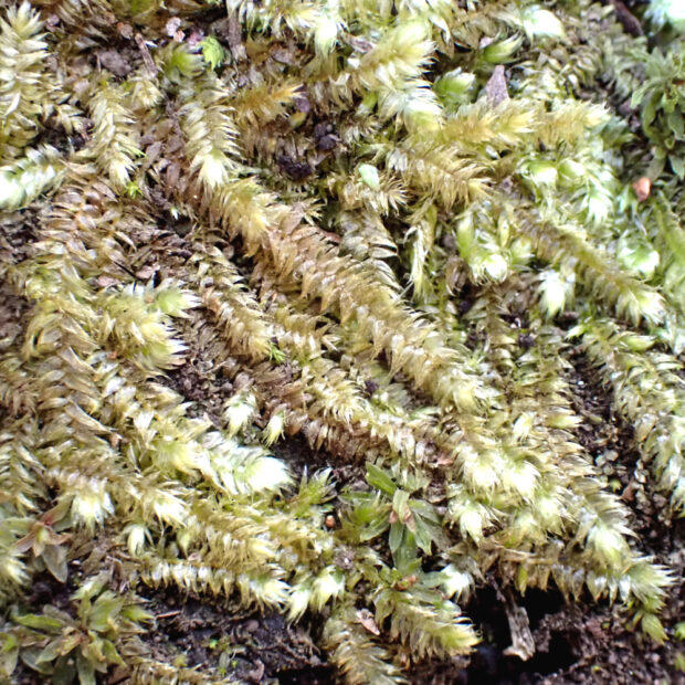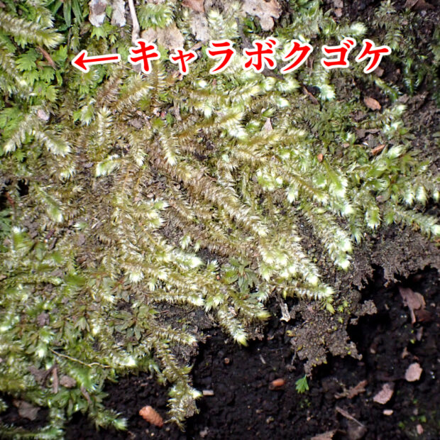 主に林内の地面に生えるコケで、 非常に平たい葉をつけている姿が独特です。 名前は針葉樹のキャラボクに由来しますが、 キャラボクは葉を立体的につけるので実際のところはあまり似ていません。 同じ名前の由来のコケに、 ホウオウゴケ科のキャラボクゴケがいます。