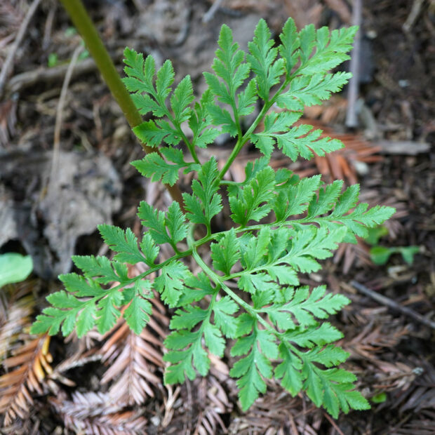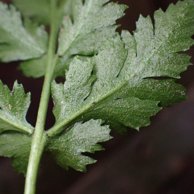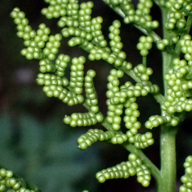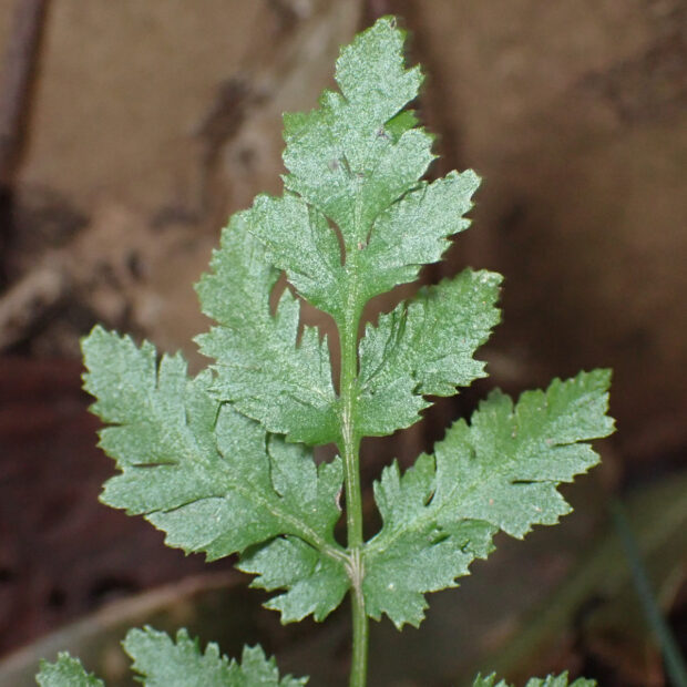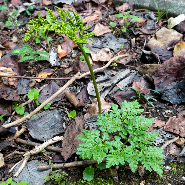 都市公園など身近な緑地でもよく見られるシダ。 花が咲いているような姿が特徴で、 冬が近づいてくると葉を出します。 同じくよく見られるオオハナワラビとはより小さめで、 栄養葉はやわらかくて立体感があり、 フチのギザギザ(鋸歯)があまり尖らないことなどで見分けられます。