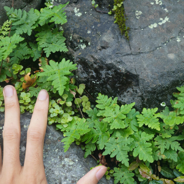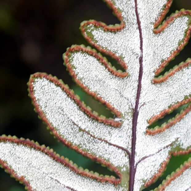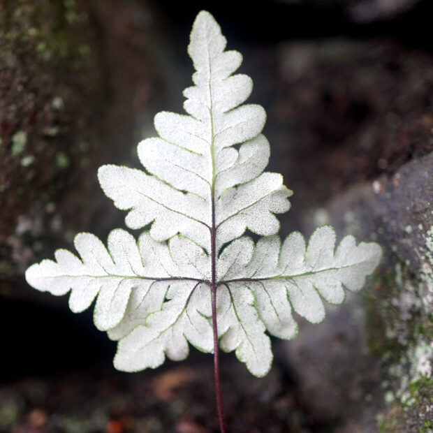 石灰岩地に生える小さめのシダ。 葉裏は真っ白で、 初めて見たときは感動ものです。