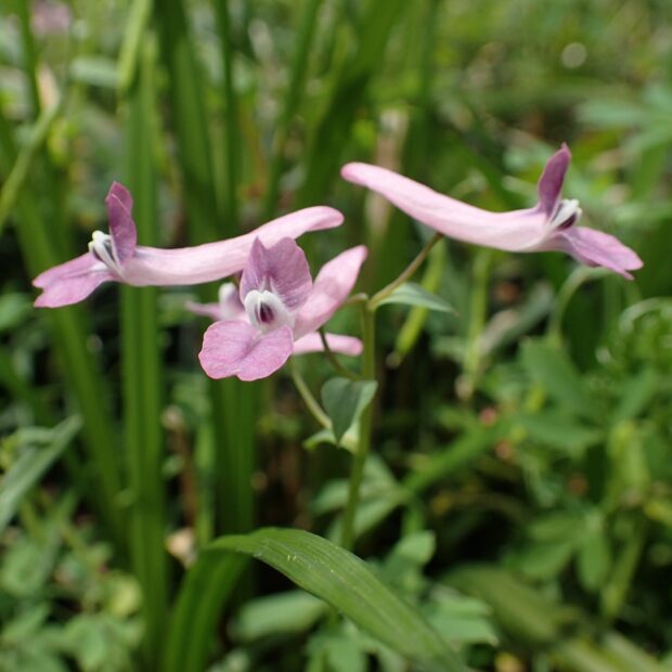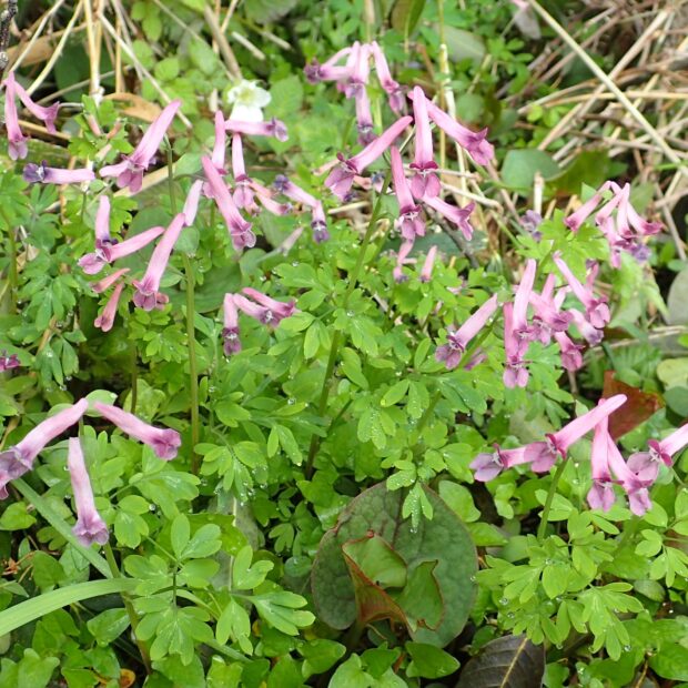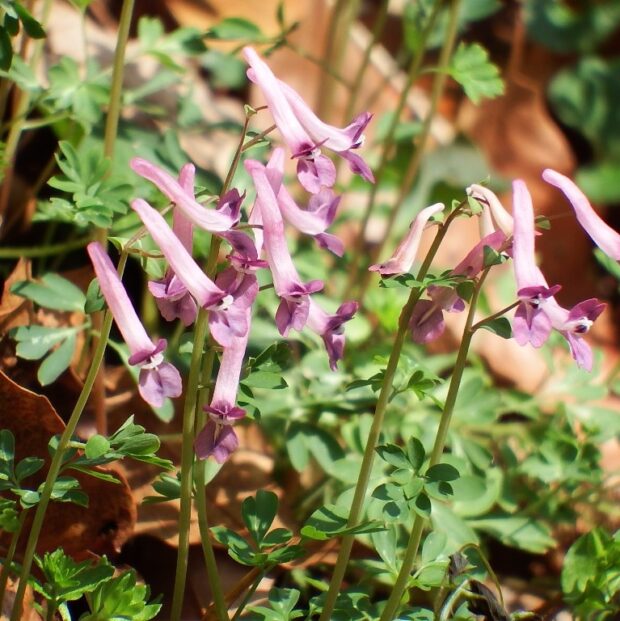 春先の明るい環境で咲き、 夏には地上部を枯らして翌春まで地中の地下茎で休眠するスプリング・エフェメラルの一種です。 早春の植物のうち、 スミレを「太郎坊」、 本種を「次郎坊」と呼んで、 花をからませ引っ張って遊んだこと、 地下茎の生薬名「延胡索」と合わせて、 次郎坊延胡索(ジロボウエンゴサク)と名がつきました。 近縁種に淡青色の花が咲くヤマエンゴサクがあります。